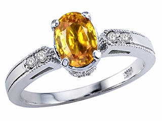 This dazzling Tommaso Design(tm) Oval 7x5 mm Genuine Yellow Sapphire and Diamond Ring, available in 14 kt Yellow Gold and 14 kt White Gold. This amazing design is mounted with 1 stone 0.90 carats prong set yellow-orange Oval Yellow Sapphire, 4 stones 0.04 carats prong set Round Brilliant Diamond K color I3 clarity. This design measures 5.00 mm wide, 7.00 mm long. Sapphire is September Birthstone: From the Latin 'sapphirus' meaning 'blue'. A symbol for truth and sincerity, it inspires spiritual enlightenment, health and inner peace. Diamond is April Birthstone: From the Greek 'adamas' meaning 'invincible'. A symbol of enduring love, it is believed to bring the wearer luck and success. Made in USA Designer: Tommaso design Studio - This classic design, is made by the renowned Tommaso Design Studio. Tommaso creations are copyrighted, so please be aware of cheap imitations selling online. Only original Tommaso designs are made using the highest quality materials and craftsmanship, backed by an exclusive Lifetime Warranty. Warranty: - This item is covered by Finejewelers exclusive Silver Shield Lifetime Warranty. This exclusive lifetime coverage is offered ONLY by Finejewelers so please shop with confidence, our quality is guaranteed for life!. Metal Available: 14 kt Yellow Gold, 14 kt White Gold.