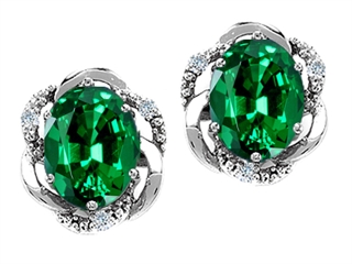 The stunning Tommaso Design(tm) Oval 8x6mm Simulated Emerald And Diamond Earrings, available in 14 kt White Gold and 14 kt Yellow Gold. This attractive design is mounted with 2 stones prong set green Oval Simulated emerald, 6 stones prong set Round Brilliant Diamond K color I3 clarity. This design measures 8.00 mm wide, 10.00 mm long. Emerald is May Birthstone: From the French 'esmeralde' meaning 'green gem'. A symbol of immortality, it is said to improve memory, wisdom and intuition. Diamond is April Birthstone: From the Greek 'adamas' meaning 'invincible'. A symbol of enduring love, it is believed to bring the wearer luck and success. Designer: Tommaso design Studio - This classic design, is made by the renowned Tommaso Design Studio. Tommaso creations are copyrighted, so please be aware of cheap imitations selling online. Only original Tommaso designs are made using the highest quality materials and craftsmanship, backed by an exclusive Lifetime Warranty. Warranty: - This item is covered by Finejewelers exclusive Silver Shield Lifetime Warranty. This exclusive lifetime coverage is offered ONLY by Finejewelers so please shop with confidence, our quality is guaranteed for life!. Metal Available: 14 kt White Gold, 14 kt Yellow Gold.