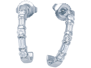 This delightful Karina B(tm) Baguette Diamonds Earrings, available in 18 kt Yellow Gold and 18 kt White Gold. This amazing design is set with 4 stones 0.35 carats bar set Baguette Diamond G color VS1 - VS2 clarity, 6 stones 0.35 carats bar set Round Brilliant Diamond G color VS2 clarity Diamond is April Birthstone: From the Greek 'adamas' meaning 'invincible'. A symbol of enduring love, it is believed to bring the wearer luck and success. Made in USA Designer: Karina B - Classic style, elegant design and perfect craftsmanship. This is the inspiration behind Karina B. Each design we create is produced with the latest technological advancements in computers and machinery. Every piece of jewelry manufactured is done from scratch according to the exact specifications of the design and stone sizes. Each precious stone is set with the guidance of a master stone setter, using the equipment that was not available in the past, to precise measurements of a hundredth of a millimeter. Combining our manufacturing techniques with high quality diamonds and precious stones along with Platinum or 18 KT gold gives you, the educated consumer, an exceptional masterpiece. If you are lucky enough to own a piece by Karina B., wear it with the confidence and pride of knowing that there is nothing made better. Warranty: - This item is covered by Finejewelers exclusive Silver Shield Lifetime Warranty. This exclusive lifetime coverage is offered ONLY by Finejewelers so please shop with confidence, our quality is guaranteed for life!. Metal Available: 18 kt Yellow Gold, 18 kt White Gold.