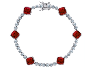 This attractive Original Star K(tm) Classic Cushion Cut 7mm Created Ruby Tennis Bracelet, crafted in .925 Sterling Silver. This amazing design is set with 6 stones bezel set red Cushion Cut Created Ruby, 36 stones prong set colorless Round Cubic Zirconia. This design measures 0.25 Inches wide, 7.50 Inches long. Ruby is July Birthstone: From the Latin 'ruber' meaning 'red'. King of gems and a symbol of royalty, it is said to inspire love, passion, confidence and leadership. Designer: Star K - This beautiful design, is part of the exclusive Star K. jewelry collection. Star K. designs are copyrighted, so please be aware of cheap imitations selling online. Only original Star K. creations are made using the highest quality materials and craftsmanship, backed by an exclusive Lifetime Warranty. Warranty: - This item is covered by Finejewelers exclusive Silver Shield Lifetime Warranty. This exclusive lifetime coverage is offered ONLY by Finejewelers so please shop with confidence, our quality is guaranteed for life!