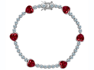 The attractive Original Star K(tm) Classic Heart Shape 7mm Created Ruby Tennis Bracelet, crafted in .925 Sterling Silver. This attractive design is mounted with 6 stones bezel set red Heart Shape Created Ruby, 36 stones prong set colorless Round Cubic Zirconia. This design measures 0.25 Inches wide, 7.50 Inches long. Ruby is July Birthstone: From the Latin 'ruber' meaning 'red'. King of gems and a symbol of royalty, it is said to inspire love, passion, confidence and leadership. Designer: Star K - This beautiful design, is part of the exclusive Star K. jewelry collection. Star K. designs are copyrighted, so please be aware of cheap imitations selling online. Only original Star K. creations are made using the highest quality materials and craftsmanship, backed by an exclusive Lifetime Warranty. Warranty: - This item is covered by Finejewelers exclusive Silver Shield Lifetime Warranty. This exclusive lifetime coverage is offered ONLY by Finejewelers so please shop with confidence, our quality is guaranteed for life!