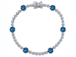 This beautiful Original Star K(tm) Classic Round 6mm Simulated Blue Topaz Tennis Bracelet, crafted in .925 Sterling Silver. This beautiful design is set with 6 stones bezel set medium to light blue Round Simulated blue topaz, 36 stones prong set colorless Round Cubic Zirconia. This design measures 0.20 Inches wide, 7.50 Inches long. Blue Topaz is December Birthstone: From the Greek 'topazos' meaning 'to seek'. Topaz is said to enhance spiritual potential, intelligence, creativity and wealth. Designer: Star K - This beautiful design, is part of the exclusive Star K. jewelry collection. Star K. designs are copyrighted, so please be aware of cheap imitations selling online. Only original Star K. creations are made using the highest quality materials and craftsmanship, backed by an exclusive Lifetime Warranty. Warranty: - This item is covered by Finejewelers exclusive Silver Shield Lifetime Warranty. This exclusive lifetime coverage is offered ONLY by Finejewelers so please shop with confidence, our quality is guaranteed for life!
