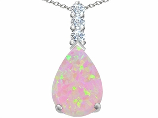 This impressive Original Star K(tm) Large 14x10mm Pear Shape Created Pink Opal Pendant, crafted in 925 Sterling Silver. This amazing design is set with 1 stone prong set pink iridesent Pear Shape Created Pink Opal, 3 stones prong set colorless Round Cubic Zirconia. This style measures 11.00 mm wide, 24.00 mm long. Opal is October Birthstone: From the Greek 'opallios', meaning 'colour change'. A symbol of hope and faithfulness, it inspires true love and brings confidence. Free 18 inches Sterling Silver Chain included Designer: Star K - This beautiful design, is part of the exclusive Star K. jewelry collection. Star K. designs are copyrighted, so please be aware of cheap imitations selling online. Only original Star K. creations are made using the highest quality materials and craftsmanship, backed by an exclusive Lifetime Warranty. Warranty: - This item is covered by Finejewelers exclusive Silver Shield Lifetime Warranty. This exclusive lifetime coverage is offered ONLY by Finejewelers so please shop with confidence, our quality is guaranteed for life!