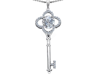 This beautiful Original Star K(tm) Large Clover Shape Key To My Heart Pendant with Round 7mm Genuine White Topaz, crafted in 925 Sterling Silver. This beautiful design is set with 1 stone prong set colorless Round White Topaz, 23 stones prong set colorless Round Cubic Zirconia. This design measures 16.00 mm wide, 45.00 mm long. Free 18 inches chain included Designer: Star K - This beautiful design, is part of the exclusive Star K. jewelry collection. Star K. designs are copyrighted, so please be aware of cheap imitations selling online. Only original Star K. creations are made using the highest quality materials and craftsmanship, backed by an exclusive Lifetime Warranty. Warranty: - This item is covered by Finejewelers exclusive Silver Shield Lifetime Warranty. This exclusive lifetime coverage is offered ONLY by Finejewelers so please shop with confidence, our quality is guaranteed for life!