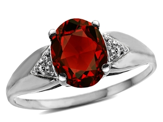 This dazzling Tommaso Design(tm) Oval 9x7 Genuine Garnet and Diamond Ring, available in 14 kt White Gold and 14 kt Yellow Gold. This attractive design is set with 1 stone 1.80 carats prong set red-brown Oval Garnet, 2 stones 0.02 carats prong set Round Brilliant Diamond K color I3 clarity. This style measures 7.00 mm wide. Garnet is January Birthstone: From the Latin word 'granatus', the seeds of a pomegranate fruit. A symbol of fidelity, Garnet's powers include healing, strength, protection. Diamond is April Birthstone: From the Greek 'adamas' meaning 'invincible'. A symbol of enduring love, it is believed to bring the wearer luck and success. Made in USA Designer: Tommaso design Studio - This classic design, is made by the renowned Tommaso Design Studio. Tommaso creations are copyrighted, so please be aware of cheap imitations selling online. Only original Tommaso designs are made using the highest quality materials and craftsmanship, backed by an exclusive Lifetime Warranty. Warranty: - This item is covered by Finejewelers exclusive Silver Shield Lifetime Warranty. This exclusive lifetime coverage is offered ONLY by Finejewelers so please shop with confidence, our quality is guaranteed for life!. Metal Available: 14 kt White Gold, 14 kt Yellow Gold.