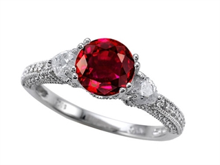 The stunning Zoe R(tm) Engagement Ring With 14 Genuine Diamonds And 7mm Round Created Ruby By Zoe R, crafted in .925 Sterling Silver. This beautiful design is mounted with 1 stone prong set red Round Created Ruby clean clarity, 14 stones prong set Round Brilliant Diamond K color I3 clarity, 8 stones prong set colorless Cubic Zirconia. This style measures 17.00 mm wide, 8.00 mm long. Ruby is July Birthstone: From the Latin 'ruber' meaning 'red'. King of gems and a symbol of royalty, it is said to inspire love, passion, confidence and leadership. Diamond is April Birthstone: From the Greek 'adamas' meaning 'invincible'. A symbol of enduring love, it is believed to bring the wearer luck and success. Warranty: - This item is covered by Finejewelers exclusive Silver Shield Lifetime Warranty. This exclusive lifetime coverage is offered ONLY by Finejewelers so please shop with confidence, our quality is guaranteed for life!