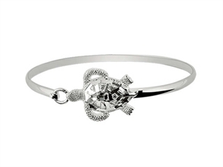 925 Sterling Silver 7 Inch Flat Dome Bangle with Damond Cut Turtle Top