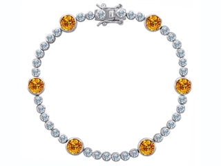 This beautiful Original Star K(tm) Classic Round 6mm Genuine Citrine Tennis Bracelet, crafted in .925 Sterling Silver. This amazing design is set with 6 stones bezel set medium to light yellow-orange Round Citrine, 36 stones prong set colorless Round Cubic Zirconia. This design measures 0.20 Inches wide, 7.50 Inches long. Citrine is November Birthstone: From the French 'citron' for 'lemon'. A symbol of success, is said to protect against sudden death and increase success and prosperity. Designer: Star K - This beautiful design, is part of the exclusive Star K. jewelry collection. Star K. designs are copyrighted, so please be aware of cheap imitations selling online. Only original Star K. creations are made using the highest quality materials and craftsmanship, backed by an exclusive Lifetime Warranty. Warranty: - This item is covered by Finejewelers exclusive Silver Shield Lifetime Warranty. This exclusive lifetime coverage is offered ONLY by Finejewelers so please shop with confidence, our quality is guaranteed for life!