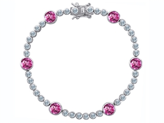 This stunning Original Star K(tm) Classic Round 6mm Created Pink Sapphire Tennis Bracelet, crafted in .925 Sterling Silver. This amazing design is set with 6 stones bezel set pink Round Created Pink Sapphire, 36 stones prong set colorless Round Cubic Zirconia. This product measures 0.20 Inches wide, 7.50 Inches long. Sapphire is September Birthstone: From the Latin 'sapphirus' meaning 'blue'. A symbol for truth and sincerity, it inspires spiritual enlightenment, health and inner peace. Designer: Star K - This beautiful design, is part of the exclusive Star K. jewelry collection. Star K. designs are copyrighted, so please be aware of cheap imitations selling online. Only original Star K. creations are made using the highest quality materials and craftsmanship, backed by an exclusive Lifetime Warranty. Warranty: - This item is covered by Finejewelers exclusive Silver Shield Lifetime Warranty. This exclusive lifetime coverage is offered ONLY by Finejewelers so please shop with confidence, our quality is guaranteed for life!