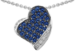 This alluring Original Star K(tm) Heart Shape Love Pendant With Created Sapphire, crafted in 925 Sterling Silver. This beautiful design is set with 29 stones prong set blue Round Created Sapphire, 9 stones prong set colorless Round Cubic Zirconia. This product measures 14.00 mm wide, 16.00 mm long. Sapphire is September Birthstone: From the Latin 'sapphirus' meaning 'blue'. A symbol for truth and sincerity, it inspires spiritual enlightenment, health and inner peace. Free 18 inches chain included Designer: Star K - This beautiful design, is part of the exclusive Star K. jewelry collection. Star K. designs are copyrighted, so please be aware of cheap imitations selling online. Only original Star K. creations are made using the highest quality materials and craftsmanship, backed by an exclusive Lifetime Warranty. Warranty: - This item is covered by Finejewelers exclusive Silver Shield Lifetime Warranty. This exclusive lifetime coverage is offered ONLY by Finejewelers so please shop with confidence, our quality is guaranteed for life!