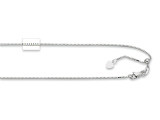The impressive Rhodium Plated 22 Inch Diamond Cut Adjustable Box Chain with Lobster Clasp and Small Heart Charm, crafted in 925 Sterling Silver. This product measures 0.80 mm wide.