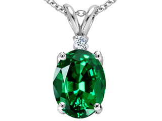 The impressing Tommaso Design(tm) Oval 8x6mm Simulated Emerald And Genuine Diamond Pendant, crafted in 10 kt White Gold. This beautiful design is mounted with 1 stone prong set green Oval Simulated emerald, 1 stone prong set Round Brilliant Diamond K color I3 clarity. This product measures 8.00 mm wide, 15.00 mm long. Emerald is May Birthstone: From the French 'esmeralde' meaning 'green gem'. A symbol of immortality, it is said to improve memory, wisdom and intuition. Diamond is April Birthstone: From the Greek 'adamas' meaning 'invincible'. A symbol of enduring love, it is believed to bring the wearer luck and success. Free 18 inches chain included Designer: Tommaso design Studio - This classic design, is made by the renowned Tommaso Design Studio. Tommaso creations are copyrighted, so please be aware of cheap imitations selling online. Only original Tommaso designs are made using the highest quality materials and craftsmanship, backed by an exclusive Lifetime Warranty. Warranty: - This item is covered by Finejewelers exclusive Silver Shield Lifetime Warranty. This exclusive lifetime coverage is offered ONLY by Finejewelers so please shop with confidence, our quality is guaranteed for life!