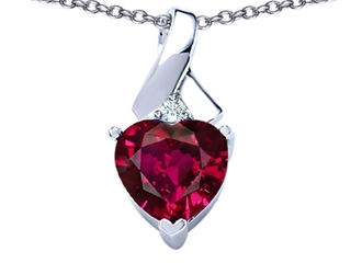 This alluring Original Star K(tm) 8mm Heart Shape Created Ruby Ribbon Pendant, crafted in 925 Sterling Silver. This beautiful design is mounted with 1 stone prong set red Heart Shape Created Ruby, 1 stone prong set colorless Round Brilliant Cubic Zirconia. This design measures 8.00 mm wide, 19.00 mm long. Ruby is July Birthstone: From the Latin 'ruber' meaning 'red'. King of gems and a symbol of royalty, it is said to inspire love, passion, confidence and leadership. Free 18 inches chain included Designer: Star K - This beautiful design, is part of the exclusive Star K. jewelry collection. Star K. designs are copyrighted, so please be aware of cheap imitations selling online. Only original Star K. creations are made using the highest quality materials and craftsmanship, backed by an exclusive Lifetime Warranty. Warranty: - This item is covered by Finejewelers exclusive Silver Shield Lifetime Warranty. This exclusive lifetime coverage is offered ONLY by Finejewelers so please shop with confidence, our quality is guaranteed for life!