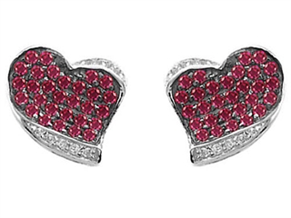 The beautiful Original Star K(tm) Heart Shape Love Earrings With Created Ruby, crafted in 925 Sterling Silver. This attractive design is set with 44 stones prong set red Round Created Ruby, 14 stones prong set colorless Round Cubic Zirconia. This style measures 10.00 mm wide, 10.00 mm long. Ruby is July Birthstone: From the Latin 'ruber' meaning 'red'. King of gems and a symbol of royalty, it is said to inspire love, passion, confidence and leadership. Designer: Star K - This beautiful design, is part of the exclusive Star K. jewelry collection. Star K. designs are copyrighted, so please be aware of cheap imitations selling online. Only original Star K. creations are made using the highest quality materials and craftsmanship, backed by an exclusive Lifetime Warranty. Warranty: - This item is covered by Finejewelers exclusive Silver Shield Lifetime Warranty. This exclusive lifetime coverage is offered ONLY by Finejewelers so please shop with confidence, our quality is guaranteed for life!