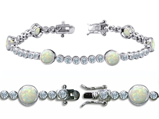 This impressing Original Star K(tm) High End Tennis Bracelet With 6pcs 6mm Created Round Opal, crafted in 925 Sterling Silver. This beautiful design is set with 6 stones bezel set white iridescent Round Created Opal, 36 stones prong set colorless Round Cubic Zirconia. This product measures 0.25 Inches wide, 7.50 Inches long. Opal is October Birthstone: From the Greek 'opallios', meaning 'colour change'. A symbol of hope and faithfulness, it inspires true love and brings confidence. Designer: Star K - This beautiful design, is part of the exclusive Star K. jewelry collection. Star K. designs are copyrighted, so please be aware of cheap imitations selling online. Only original Star K. creations are made using the highest quality materials and craftsmanship, backed by an exclusive Lifetime Warranty. Warranty: - This item is covered by Finejewelers exclusive Silver Shield Lifetime Warranty. This exclusive lifetime coverage is offered ONLY by Finejewelers so please shop with confidence, our quality is guaranteed for life!