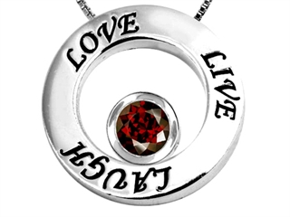 The impressing Original Star K(tm) Live/Love/Laugh Circle of Life Pendant with January Birthstone Round 7mm Simulated Garnet, crafted in 925 Sterling Silver. This beautiful design is mounted with 1 stone prong set red-brown Round Simulated Garnet clean clarity. This style measures 20.00 mm wide, 20.00 mm long. Garnet is January Birthstone: From the Latin word 'granatus', the seeds of a pomegranate fruit. A symbol of fidelity, Garnet's powers include healing, strength, protection. Free 18 inches Sterling Silver Chain included Designer: Star K - This beautiful design, is part of the exclusive Star K. jewelry collection. Star K. designs are copyrighted, so please be aware of cheap imitations selling online. Only original Star K. creations are made using the highest quality materials and craftsmanship, backed by an exclusive Lifetime Warranty. Warranty: - This item is covered by Finejewelers exclusive Silver Shield Lifetime Warranty. This exclusive lifetime coverage is offered ONLY by Finejewelers so please shop with confidence, our quality is guaranteed for life!