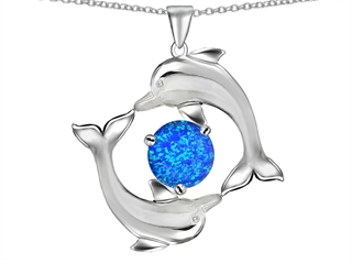 The impressing Original Star K(tm) Round 6mm Created Blue Opal Dolphin Pendant, crafted in 925 Sterling Silver. This amazing design is set with 1 stone prong set blue green iridescent Round Created Blue Opal. This style measures 12.00 mm wide, 18.00 mm long. Designer: Star K - This beautiful design, is part of the exclusive Star K. jewelry collection. Star K. designs are copyrighted, so please be aware of cheap imitations selling online. Only original Star K. creations are made using the highest quality materials and craftsmanship, backed by an exclusive Lifetime Warranty. Warranty: - This item is covered by Finejewelers exclusive Silver Shield Lifetime Warranty. This exclusive lifetime coverage is offered ONLY by Finejewelers so please shop with confidence, our quality is guaranteed for life!