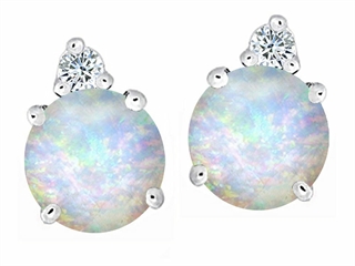This impressing Original Star K(tm) Round 7mm Created Opal Earring Studs, crafted in 925 Sterling Silver. This beautiful design is set with 2 stones prong set white iridescent Round Created Opal, 2 stones prong set colorless Round Cubic Zirconia. This style measures 7.00 mm wide, 9.00 mm long. Opal is October Birthstone: From the Greek 'opallios', meaning 'colour change'. A symbol of hope and faithfulness, it inspires true love and brings confidence. Designer: Star K - This beautiful design, is part of the exclusive Star K. jewelry collection. Star K. designs are copyrighted, so please be aware of cheap imitations selling online. Only original Star K. creations are made using the highest quality materials and craftsmanship, backed by an exclusive Lifetime Warranty. Warranty: - This item is covered by Finejewelers exclusive Silver Shield Lifetime Warranty. This exclusive lifetime coverage is offered ONLY by Finejewelers so please shop with confidence, our quality is guaranteed for life!