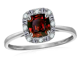 The impressive Tommaso Design(tm) Classic Cushion Cut Designer Ring with Genuine Diamonds and Garnet, crafted in 10 kt White Gold. This beautiful design is mounted with 1 stone 1.50 carats prong set red-brown Cushion Cut Garnet clean clarity, 8 stones 0.04 carats prong set Round Brilliant Diamond K color I3 clarity. This product measures 9.00 mm wide, 9.00 mm long. Garnet is January Birthstone: From the Latin word 'granatus', the seeds of a pomegranate fruit. A symbol of fidelity, Garnet's powers include healing, strength, protection. Diamond is April Birthstone: From the Greek 'adamas' meaning 'invincible'. A symbol of enduring love, it is believed to bring the wearer luck and success. Designer: Tommaso design Studio - This classic design, is made by the renowned Tommaso Design Studio. Tommaso creations are copyrighted, so please be aware of cheap imitations selling online. Only original Tommaso designs are made using the highest quality materials and craftsmanship, backed by an exclusive Lifetime Warranty. Warranty: - This item is covered by Finejewelers exclusive Silver Shield Lifetime Warranty. This exclusive lifetime coverage is offered ONLY by Finejewelers so please shop with confidence, our quality is guaranteed for life!