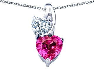 The beautiful Original Star K(tm) 8mm Heart Shape Created Pink Sapphire Double Hearts Pendant, crafted in 925 Sterling Silver. This attractive design is set with 1 stone prong set pink Heart Shape Created Pink Sapphire, 1 stone prong set colorless Heart Shape Cubic Zirconia. This design measures 11.00 mm wide, 21.00 mm long. Sapphire is September Birthstone: From the Latin 'sapphirus' meaning 'blue'. A symbol for truth and sincerity, it inspires spiritual enlightenment, health and inner peace. Free 18 inches chain included Designer: Star K - This beautiful design, is part of the exclusive Star K. jewelry collection. Star K. designs are copyrighted, so please be aware of cheap imitations selling online. Only original Star K. creations are made using the highest quality materials and craftsmanship, backed by an exclusive Lifetime Warranty. Warranty: - This item is covered by Finejewelers exclusive Silver Shield Lifetime Warranty. This exclusive lifetime coverage is offered ONLY by Finejewelers so please shop with confidence, our quality is guaranteed for life!