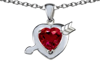 The beautiful Original Star K(tm) Heart with Cupid's Arrow Love Pendant with Created Ruby, crafted in 925 Sterling Silver. This beautiful design is set with 1 stone prong set red Heart Shape Created Ruby. This design measures 18.00 mm wide, 20.00 mm long. Ruby is July Birthstone: From the Latin 'ruber' meaning 'red'. King of gems and a symbol of royalty, it is said to inspire love, passion, confidence and leadership. Free 18 inches chain included Designer: Star K - This beautiful design, is part of the exclusive Star K. jewelry collection. Star K. designs are copyrighted, so please be aware of cheap imitations selling online. Only original Star K. creations are made using the highest quality materials and craftsmanship, backed by an exclusive Lifetime Warranty. Warranty: - This item is covered by Finejewelers exclusive Silver Shield Lifetime Warranty. This exclusive lifetime coverage is offered ONLY by Finejewelers so please shop with confidence, our quality is guaranteed for life!