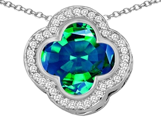 The dazzling Original Star K(tm) Large Clover Pendant with 12mm Clover Cut Simulated Emerald, crafted in 925 Sterling Silver. This amazing design is set with 1 stone bezel set green Clover Simulated Emerald, 36 stones channel set colorless Round Brilliant Cubic Zirconia. This style measures 15.00 mm wide, 15.00 mm long. Emerald is May Birthstone: From the French 'esmeralde' meaning 'green gem'. A symbol of immortality, it is said to improve memory, wisdom and intuition. Free 18 inches chain included Designer: Star K - This beautiful design, is part of the exclusive Star K. jewelry collection. Star K. designs are copyrighted, so please be aware of cheap imitations selling online. Only original Star K. creations are made using the highest quality materials and craftsmanship, backed by an exclusive Lifetime Warranty. Warranty: - This item is covered by Finejewelers exclusive Silver Shield Lifetime Warranty. This exclusive lifetime coverage is offered ONLY by Finejewelers so please shop with confidence, our quality is guaranteed for life!