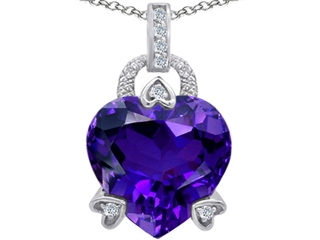 This amazing Original Star K(tm) Large Lock Love Heart Pendant with 13mm Heart Shape Simulated Amethyst, crafted in 925 Sterling Silver. This amazing design is set with 1 stone prong set violet Heart Shape Simulated Amethyst, 8 stones prong set colorless Round Cubic Zirconia. This product measures 13.00 mm wide, 22.00 mm long. Amethyst is February Birthstone: From the Greek 'amethystos' meaning 'sober'. A symbol of trust, Amethyst is thought to protect against seduction and provide peace. Free 18 inches chain included Designer: Star K - This beautiful design, is part of the exclusive Star K. jewelry collection. Star K. designs are copyrighted, so please be aware of cheap imitations selling online. Only original Star K. creations are made using the highest quality materials and craftsmanship, backed by an exclusive Lifetime Warranty. Warranty: - This item is covered by Finejewelers exclusive Silver Shield Lifetime Warranty. This exclusive lifetime coverage is offered ONLY by Finejewelers so please shop with confidence, our quality is guaranteed for life!