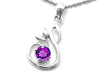 The stunning Original Star K(tm) Round Simulated Amethyst Swan Pendant, crafted in 925 Sterling Silver. This beautiful design is set with 1 stone prong set violet Round Simulated Amethyst. This product measures 11.00 mm wide, 25.00 mm long. Amethyst is February Birthstone: From the Greek 'amethystos' meaning 'sober'. A symbol of trust, Amethyst is thought to protect against seduction and provide peace. Free 18 inches Sterling Silver Chain included Designer: Star K - This beautiful design, is part of the exclusive Star K. jewelry collection. Star K. designs are copyrighted, so please be aware of cheap imitations selling online. Only original Star K. creations are made using the highest quality materials and craftsmanship, backed by an exclusive Lifetime Warranty. Warranty: - This item is covered by Finejewelers exclusive Silver Shield Lifetime Warranty. This exclusive lifetime coverage is offered ONLY by Finejewelers so please shop with confidence, our quality is guaranteed for life!