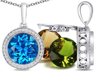 The dazzling Switch-It Gems(tm) Interchangeable Simulated Blue Topaz Pendant Set with 12 Round 10mm Birthstones Included, crafted in 925 Sterling Silver. This beautiful design is mounted with 30 stones channel set colorless Round Brilliant Cubic Zirconia. This design measures 14.00 mm wide, 22.00 mm long. Blue Topaz is December Birthstone: From the Greek 'topazos' meaning 'to seek'. Topaz is said to enhance spiritual potential, intelligence, creativity and wealth. Free 18 inches chain included 12 Round 10mm Simulated Birthstone Included Switch-It Gem(tm) Designs are protected by US Copyright and Patent Laws Warranty: - This item is covered by Finejewelers exclusive Silver Shield Lifetime Warranty. This exclusive lifetime coverage is offered ONLY by Finejewelers so please shop with confidence, our quality is guaranteed for life!