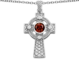 This impressive Celtic Love by Kelly(tm) Celtic Cross pendant with 7mm Round Genuine Garnet, crafted in 925 Sterling Silver. This amazing design is mounted with 1 stone prong set red-brown Round Garnet, 4 stones prong set colorless Round Brilliant Cubic Zirconia. This style measures 19.00 mm wide, 36.00 mm long. Garnet is January Birthstone: From the Latin word 'granatus', the seeds of a pomegranate fruit. A symbol of fidelity, Garnet's powers include healing, strength, protection. Free 18 inches chain included Warranty: - This item is covered by Finejewelers exclusive Silver Shield Lifetime Warranty. This exclusive lifetime coverage is offered ONLY by Finejewelers so please shop with confidence, our quality is guaranteed for life!