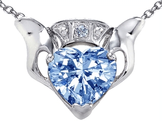 The beautiful Celtic Love(tm) by Kelly Claddagh Love Pendant With Simulated Aquamarine and Genuine Diamond, crafted in 10 kt White Gold. This beautiful design is set with 1 stone prong set faint blue Heart Shape Simulated Aquamarine, 1 stone prong set Round Brilliant Diamond K color I3 clarity. This style measures 13.00 mm wide, 15.00 mm long. Aquamarine is March Birthstone: From the latin `aqua` and `mare` meaning 'sea water'. Aquamarine is said to provide everlasting youth, courage, and happiness. Diamond is April Birthstone: From the Greek 'adamas' meaning 'invincible'. A symbol of enduring love, it is believed to bring the wearer luck and success. Free 18 inches chain included Warranty: - This item is covered by Finejewelers exclusive Silver Shield Lifetime Warranty. This exclusive lifetime coverage is offered ONLY by Finejewelers so please shop with confidence, our quality is guaranteed for life!