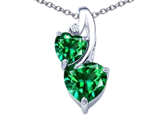 This impressing Original Star K(tm) 8mm Heart Shape Simulated Emerald Double Hearts Pendant, crafted in 925 Sterling Silver. This amazing design is set with 1 stone prong set green Heart Shape Simulated Emerald, 1 stone prong set green Heart Shape Simulated Emerald, 1 stone prong set colorless Round Brilliant Cubic Zirconia. This style measures 11.00 mm wide, 21.00 mm long. Emerald is May Birthstone: From the French 'esmeralde' meaning 'green gem'. A symbol of immortality, it is said to improve memory, wisdom and intuition. Free 18 inches chain included Designer: Star K - This beautiful design, is part of the exclusive Star K. jewelry collection. Star K. designs are copyrighted, so please be aware of cheap imitations selling online. Only original Star K. creations are made using the highest quality materials and craftsmanship, backed by an exclusive Lifetime Warranty. Warranty: - This item is covered by Finejewelers exclusive Silver Shield Lifetime Warranty. This exclusive lifetime coverage is offered ONLY by Finejewelers so please shop with confidence, our quality is guaranteed for life!