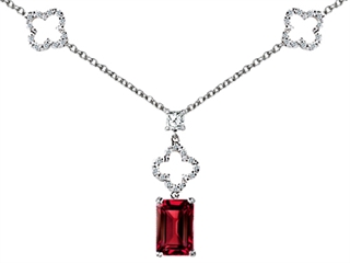 The alluring Original Star K(tm) Emerald Cut Created Ruby Necklace, crafted in 925 Sterling Silver. This beautiful design is mounted with 1 stone prong set red Emerald Cut Created Ruby eye clean clarity, 1 stone bezel set colorless Princess Cubic Zirconia, 36 stones prong set colorless Round Brilliant Cubic Zirconia. This design measures 8.00 mm wide, 32.00 mm long. Ruby is July Birthstone: From the Latin 'ruber' meaning 'red'. King of gems and a symbol of royalty, it is said to inspire love, passion, confidence and leadership. Free 18 inches chain included Designer: Star K - This beautiful design, is part of the exclusive Star K. jewelry collection. Star K. designs are copyrighted, so please be aware of cheap imitations selling online. Only original Star K. creations are made using the highest quality materials and craftsmanship, backed by an exclusive Lifetime Warranty. Warranty: - This item is covered by Finejewelers exclusive Silver Shield Lifetime Warranty. This exclusive lifetime coverage is offered ONLY by Finejewelers so please shop with confidence, our quality is guaranteed for life!