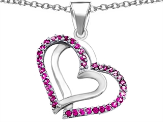 The impressing Original Star K(tm) Round Created Pink Sapphire Double Hearts Pendant, crafted in 925 Sterling Silver. This beautiful design is set with 36 stones prong set pink Round Created Pink Sapphire. This product measures 23.00 mm wide, 25.00 mm long. Sapphire is September Birthstone: From the Latin 'sapphirus' meaning 'blue'. A symbol for truth and sincerity, it inspires spiritual enlightenment, health and inner peace. Free 18 inches chain included Designer: Star K - This beautiful design, is part of the exclusive Star K. jewelry collection. Star K. designs are copyrighted, so please be aware of cheap imitations selling online. Only original Star K. creations are made using the highest quality materials and craftsmanship, backed by an exclusive Lifetime Warranty. Warranty: - This item is covered by Finejewelers exclusive Silver Shield Lifetime Warranty. This exclusive lifetime coverage is offered ONLY by Finejewelers so please shop with confidence, our quality is guaranteed for life!