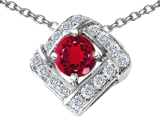 This beautiful Original Star K(tm) Round Created Ruby Pendant, crafted in 925 Sterling Silver. This amazing design is mounted with 1 stone prong set red Round Created Ruby, 12 stones prong set colorless Round Cubic Zirconia. This style measures 13.00 mm wide, 13.00 mm long. Ruby is July Birthstone: From the Latin 'ruber' meaning 'red'. King of gems and a symbol of royalty, it is said to inspire love, passion, confidence and leadership. Free 18 inches chain included Designer: Star K - This beautiful design, is part of the exclusive Star K. jewelry collection. Star K. designs are copyrighted, so please be aware of cheap imitations selling online. Only original Star K. creations are made using the highest quality materials and craftsmanship, backed by an exclusive Lifetime Warranty. Warranty: - This item is covered by Finejewelers exclusive Silver Shield Lifetime Warranty. This exclusive lifetime coverage is offered ONLY by Finejewelers so please shop with confidence, our quality is guaranteed for life!
