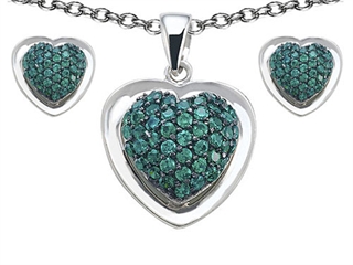 This dazzling Original Star K(tm) Simulated Emerald Heart Shape Love Pendant Box Set with matching earrings, crafted in 925 Sterling Silver. This attractive design is mounted with 82 stones prong set green Round Simulated Emerald. This product measures 16.00 mm wide, 24.00 mm long. Emerald is May Birthstone: From the French 'esmeralde' meaning 'green gem'. A symbol of immortality, it is said to improve memory, wisdom and intuition. Free 18 inches chain included Designer: Star K - This beautiful design, is part of the exclusive Star K. jewelry collection. Star K. designs are copyrighted, so please be aware of cheap imitations selling online. Only original Star K. creations are made using the highest quality materials and craftsmanship, backed by an exclusive Lifetime Warranty. Warranty: - This item is covered by Finejewelers exclusive Silver Shield Lifetime Warranty. This exclusive lifetime coverage is offered ONLY by Finejewelers so please shop with confidence, our quality is guaranteed for life!