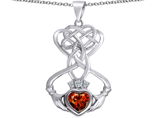 The impressive Celtic Love By Kelly (tm) Celtic Knot Claddagh Heart Pendant with Heart Shape Simulated Garnet, crafted in 925 Sterling Silver. This attractive design is set with 1 stone bezel set red-brown Heart Shape Simulated Garnet clean clarity, 3 stones prong set colorless Round Brilliant Cubic Zirconia clean clarity. This design measures 22.00 mm wide, 38.00 mm long. Garnet is January Birthstone: From the Latin word 'granatus', the seeds of a pomegranate fruit. A symbol of fidelity, Garnet's powers include healing, strength, protection. Free 18 inches Sterling Silver Chain included Designer: Star K - This beautiful design, is part of the exclusive Star K. jewelry collection. Star K. designs are copyrighted, so please be aware of cheap imitations selling online. Only original Star K. creations are made using the highest quality materials and craftsmanship, backed by an exclusive Lifetime Warranty. Warranty: - This item is covered by Finejewelers exclusive Silver Shield Lifetime Warranty. This exclusive lifetime coverage is offered ONLY by Finejewelers so please shop with confidence, our quality is guaranteed for life!