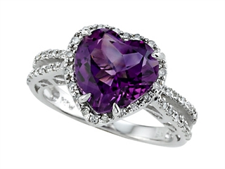 The beautiful Genuine Amethyst Ring by Effy Collection(r), available in 14 kt Yellow Gold and 14 kt White Gold. This attractive design is set with 48 stones 0.24 carats prong set Round Brilliant Diamond other-color color I2-I3 clarity, 1 stone 2.38 carats prong set medium to dark violet Heart Shape Amethyst eye clean clarity Diamond is April Birthstone: From the Greek 'adamas' meaning 'invincible'. A symbol of enduring love, it is believed to bring the wearer luck and success. Amethyst is February Birthstone: From the Greek 'amethystos' meaning 'sober'. A symbol of trust, Amethyst is thought to protect against seduction and provide peace. Warranty: - This item is covered by Finejewelers exclusive Silver Shield Lifetime Warranty. This exclusive lifetime coverage is offered ONLY by Finejewelers so please shop with confidence, our quality is guaranteed for life!. Metal Available: 14 kt Yellow Gold, 14 kt White Gold.