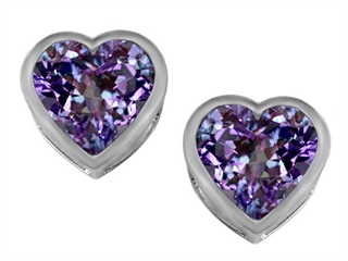 This delightful Original Star K(tm) 7mm Heart Shape Simulated Alexandrite Heart Earring Studs, crafted in 925 Sterling Silver. This attractive design is set with 2 stones bezel set color change Heart Shape Simulated Alexandrite. This product measures 8.50 mm wide, 9.00 mm long. Alexandrite is June Birthstone: Named after Czar Alexander II of Russia, this very rare gem has the ability to change color. A symbol for change, Alexandrite is said to inspire imagination, creativity and confidence. Designer: Star K - This beautiful design, is part of the exclusive Star K. jewelry collection. Star K. designs are copyrighted, so please be aware of cheap imitations selling online. Only original Star K. creations are made using the highest quality materials and craftsmanship, backed by an exclusive Lifetime Warranty. Warranty: - This item is covered by Finejewelers exclusive Silver Shield Lifetime Warranty. This exclusive lifetime coverage is offered ONLY by Finejewelers so please shop with confidence, our quality is guaranteed for life!