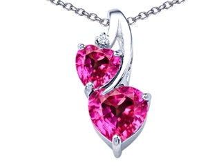 The dazzling Original Star K(tm) 8mm Heart Shape Created Pink Sapphire Double Hearts Pendant, crafted in 925 Sterling Silver. This amazing design is set with 1 stone prong set pink Heart Shape Created Pink Sapphire, 1 stone prong set pink Heart Shape Created Pink Sapphire, 1 stone prong set colorless Round Brilliant Cubic Zirconia. This style measures 11.00 mm wide, 21.00 mm long. Sapphire is September Birthstone: From the Latin 'sapphirus' meaning 'blue'. A symbol for truth and sincerity, it inspires spiritual enlightenment, health and inner peace. Free 18 inches chain included Designer: Star K - This beautiful design, is part of the exclusive Star K. jewelry collection. Star K. designs are copyrighted, so please be aware of cheap imitations selling online. Only original Star K. creations are made using the highest quality materials and craftsmanship, backed by an exclusive Lifetime Warranty. Warranty: - This item is covered by Finejewelers exclusive Silver Shield Lifetime Warranty. This exclusive lifetime coverage is offered ONLY by Finejewelers so please shop with confidence, our quality is guaranteed for life!