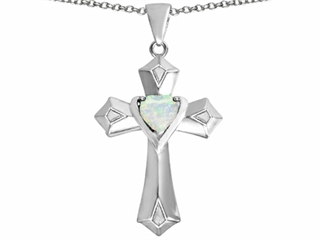 This beautiful Original Star K(tm) Heart Cross Love Pendant with Heart Shape Created Opal, crafted in 925 Sterling Silver. This beautiful design is set with 1 stone prong set white iridescent Heart Shape Created Opal clean clarity. This design measures 21.00 mm wide, 40.00 mm long. Opal is October Birthstone: From the Greek 'opallios', meaning 'colour change'. A symbol of hope and faithfulness, it inspires true love and brings confidence. Free 18 inches Sterling Silver Chain included Designer: Star K - This beautiful design, is part of the exclusive Star K. jewelry collection. Star K. designs are copyrighted, so please be aware of cheap imitations selling online. Only original Star K. creations are made using the highest quality materials and craftsmanship, backed by an exclusive Lifetime Warranty. Warranty: - This item is covered by Finejewelers exclusive Silver Shield Lifetime Warranty. This exclusive lifetime coverage is offered ONLY by Finejewelers so please shop with confidence, our quality is guaranteed for life!