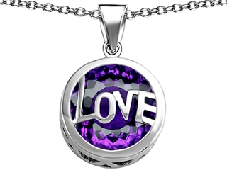 This dazzling Original Star K(tm) Large Love Round Pendant with 15mm Round Simulated Amethyst, crafted in 925 Sterling Silver. This beautiful design is mounted with 1 stone bezel set violet Round Simulated Amethyst. This product measures 17.00 mm wide, 25.00 mm long. Amethyst is February Birthstone: From the Greek 'amethystos' meaning 'sober'. A symbol of trust, Amethyst is thought to protect against seduction and provide peace. Free 18 inches chain included Designer: Star K - This beautiful design, is part of the exclusive Star K. jewelry collection. Star K. designs are copyrighted, so please be aware of cheap imitations selling online. Only original Star K. creations are made using the highest quality materials and craftsmanship, backed by an exclusive Lifetime Warranty. Warranty: - This item is covered by Finejewelers exclusive Silver Shield Lifetime Warranty. This exclusive lifetime coverage is offered ONLY by Finejewelers so please shop with confidence, our quality is guaranteed for life!
