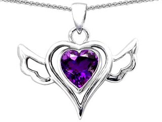 The beautiful Original Star K(tm) Wings Of Love Pendant with Heart Shape Simulated Amethyst, crafted in 925 Sterling Silver. This beautiful design is set with 1 stone prong set violet Heart Shape Simulated Amethyst clean clarity. This style measures 25.00 mm wide, 23.00 mm long. Amethyst is February Birthstone: From the Greek 'amethystos' meaning 'sober'. A symbol of trust, Amethyst is thought to protect against seduction and provide peace. Free 18 inches Sterling Silver Chain included Designer: Star K - This beautiful design, is part of the exclusive Star K. jewelry collection. Star K. designs are copyrighted, so please be aware of cheap imitations selling online. Only original Star K. creations are made using the highest quality materials and craftsmanship, backed by an exclusive Lifetime Warranty. Warranty: - This item is covered by Finejewelers exclusive Silver Shield Lifetime Warranty. This exclusive lifetime coverage is offered ONLY by Finejewelers so please shop with confidence, our quality is guaranteed for life!