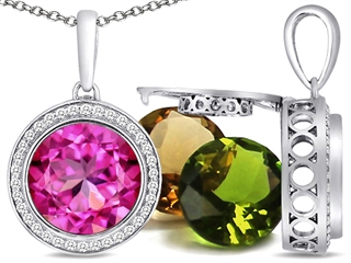This delightful Switch-It Gems(tm) Round 10mm Simulated Pink Tourmaline Pendant with 12 Interchangeable Simulated Birthstones, crafted in 925 Sterling Silver. This beautiful design is mounted with 30 stones channel set colorless Round Brilliant Cubic Zirconia. This product measures 14.00 mm wide, 22.00 mm long. Free 18 inches chain included 12 Round 10mm Simulated Birthstone Included Switch-It Gem(tm) Designs are protected by US Copyright and Patent Laws Warranty: - This item is covered by Finejewelers exclusive Silver Shield Lifetime Warranty. This exclusive lifetime coverage is offered ONLY by Finejewelers so please shop with confidence, our quality is guaranteed for life!
