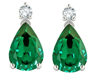 This dazzling Tommaso Design(tm) 8x6mm Pear Shape Simulated Emerald And Genuine Diamond Drops Earring, crafted in 14 kt White Gold. This amazing design is mounted with 2 stones prong set green Pear Shape Simulated Emerald, 2 stones prong set Round Brilliant Diamond K color I3 clarity. This design measures 6.00 mm wide, 11.00 mm long. Emerald is May Birthstone: From the French 'esmeralde' meaning 'green gem'. A symbol of immortality, it is said to improve memory, wisdom and intuition. Diamond is April Birthstone: From the Greek 'adamas' meaning 'invincible'. A symbol of enduring love, it is believed to bring the wearer luck and success. Designer: Tommaso design Studio - This classic design, is made by the renowned Tommaso Design Studio. Tommaso creations are copyrighted, so please be aware of cheap imitations selling online. Only original Tommaso designs are made using the highest quality materials and craftsmanship, backed by an exclusive Lifetime Warranty. Warranty: - This item is covered by Finejewelers exclusive Silver Shield Lifetime Warranty. This exclusive lifetime coverage is offered ONLY by Finejewelers so please shop with confidence, our quality is guaranteed for life!