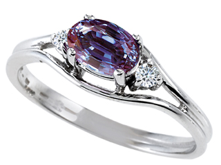 This amazing Tommaso Design(tm) Simulated Alexandrite And Genuine Diamond Ring, crafted in 10 kt White Gold. This attractive design is set with 1 stone prong set color change Oval Simulated alexandrite, 2 stones prong set Round Brilliant Diamond K color I3 clarity. This design measures 8.00 mm wide, 4.00 mm long. Alexandrite is June Birthstone: Named after Czar Alexander II of Russia, this very rare gem has the ability to change color. A symbol for change, Alexandrite is said to inspire imagination, creativity and confidence. Diamond is April Birthstone: From the Greek 'adamas' meaning 'invincible'. A symbol of enduring love, it is believed to bring the wearer luck and success. Designer: Tommaso design Studio - This classic design, is made by the renowned Tommaso Design Studio. Tommaso creations are copyrighted, so please be aware of cheap imitations selling online. Only original Tommaso designs are made using the highest quality materials and craftsmanship, backed by an exclusive Lifetime Warranty. Warranty: - This item is covered by Finejewelers exclusive Silver Shield Lifetime Warranty. This exclusive lifetime coverage is offered ONLY by Finejewelers so please shop with confidence, our quality is guaranteed for life!