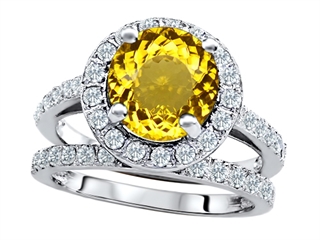The dazzling Original Star K(tm) 8mm Round Simulated Citrine Engagement Wedding Set, crafted in 925 Sterling Silver. This attractive design is set with 1 stone prong set medium to light yellow Round Simulated Citrine, 43 stones channel set colorless Round Brilliant Cubic Zirconia. This style measures 11.50 mm wide, 11.50 mm long. Citrine is November Birthstone: From the French 'citron' for 'lemon'. A symbol of success, is said to protect against sudden death and increase success and prosperity. Designer: Star K - This beautiful design, is part of the exclusive Star K. jewelry collection. Star K. designs are copyrighted, so please be aware of cheap imitations selling online. Only original Star K. creations are made using the highest quality materials and craftsmanship, backed by an exclusive Lifetime Warranty. Warranty: - This item is covered by Finejewelers exclusive Silver Shield Lifetime Warranty. This exclusive lifetime coverage is offered ONLY by Finejewelers so please shop with confidence, our quality is guaranteed for life!