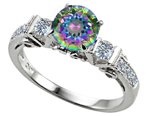 This impressive Original Star K(tm) Classic 3 Stone Engagement Ring With Round 7mm Rainbow Mystic Topaz, crafted in 925 Sterling Silver. This amazing design is set with 1 stone prong set multicolor Round Mystic Topaz, 8 stones prong set colorless Round Cubic Zirconia. This product measures 7.00 mm wide. Designer: Star K - This beautiful design, is part of the exclusive Star K. jewelry collection. Star K. designs are copyrighted, so please be aware of cheap imitations selling online. Only original Star K. creations are made using the highest quality materials and craftsmanship, backed by an exclusive Lifetime Warranty. Warranty: - This item is covered by Finejewelers exclusive Silver Shield Lifetime Warranty. This exclusive lifetime coverage is offered ONLY by Finejewelers so please shop with confidence, our quality is guaranteed for life!