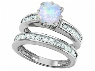This amazing Original Star K(tm) Cushion Cut 7mm Created Opal Engagement Wedding Set, crafted in 925 Sterling Silver. This amazing design is mounted with 1 stone prong set white iridescent Cushion Cut Created Opal, 24 stones channel set colorless Princess Cubic Zirconia. This design measures 7.00 mm wide, 7.00 mm long. Opal is October Birthstone: From the Greek 'opallios', meaning 'colour change'. A symbol of hope and faithfulness, it inspires true love and brings confidence. Designer: Star K - This beautiful design, is part of the exclusive Star K. jewelry collection. Star K. designs are copyrighted, so please be aware of cheap imitations selling online. Only original Star K. creations are made using the highest quality materials and craftsmanship, backed by an exclusive Lifetime Warranty. Warranty: - This item is covered by Finejewelers exclusive Silver Shield Lifetime Warranty. This exclusive lifetime coverage is offered ONLY by Finejewelers so please shop with confidence, our quality is guaranteed for life!