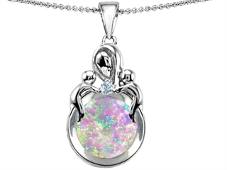 The impressing Original Star K(tm) Large Loving Mother With Children Pendant With Round Created Pink Opal, crafted in 925 Sterling Silver. This amazing design is mounted with 1 stone bezel set pink iridesent Round Created Pink Opal, 1 stone bezel set colorless Round Cubic Zirconia. This design measures 13.00 mm wide, 28.00 mm long. Opal is October Birthstone: From the Greek 'opallios', meaning 'colour change'. A symbol of hope and faithfulness, it inspires true love and brings confidence. Free 18 inches chain included Designer: Star K - This beautiful design, is part of the exclusive Star K. jewelry collection. Star K. designs are copyrighted, so please be aware of cheap imitations selling online. Only original Star K. creations are made using the highest quality materials and craftsmanship, backed by an exclusive Lifetime Warranty. Warranty: - This item is covered by Finejewelers exclusive Silver Shield Lifetime Warranty. This exclusive lifetime coverage is offered ONLY by Finejewelers so please shop with confidence, our quality is guaranteed for life!
